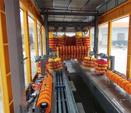 金龍隧道式洗車機(jī),根據(jù)消費(fèi)者的要求的不同,隧道式全自動洗車機(jī)共開發(fā)出了5支刷、7支刷、9支刷、11支刷、12支刷、14支刷6個型號,本產(chǎn)品采用了最實(shí)用化的設(shè)計理念:輸送機(jī)更矮、更寬,可適應(yīng)最新型車輛要求,輸送機(jī)的人性化設(shè)計,不會有積水和淤泥,便于清理,入口有車輪導(dǎo)正器,方便車輛駛?cè)耄徽麢C(jī)采用防腐框架加封玻璃,高端、大氣、上檔次,產(chǎn)品廣告效應(yīng)極佳