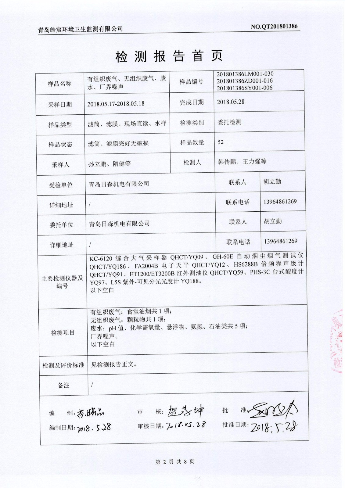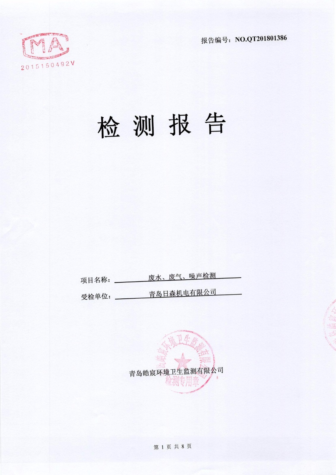 關(guān)于日森機(jī)電有限公司廢水、廢氣、噪聲監(jiān)測報(bào)告的公示